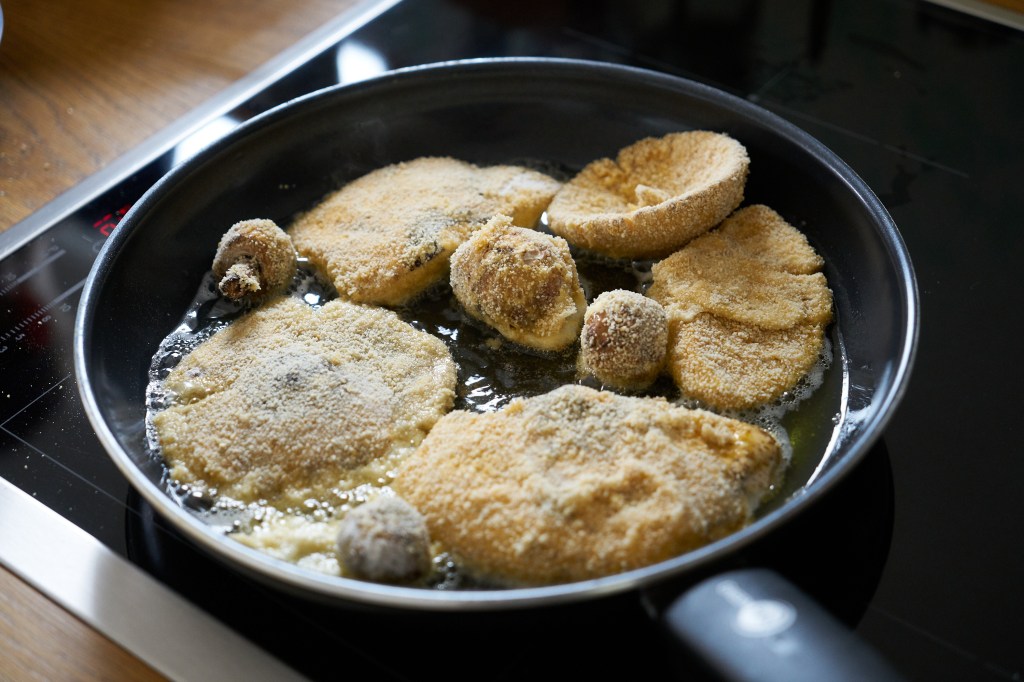 Für die Brösel der Panier wird alt gewordenes, trockenes Weißbrot verwendet.