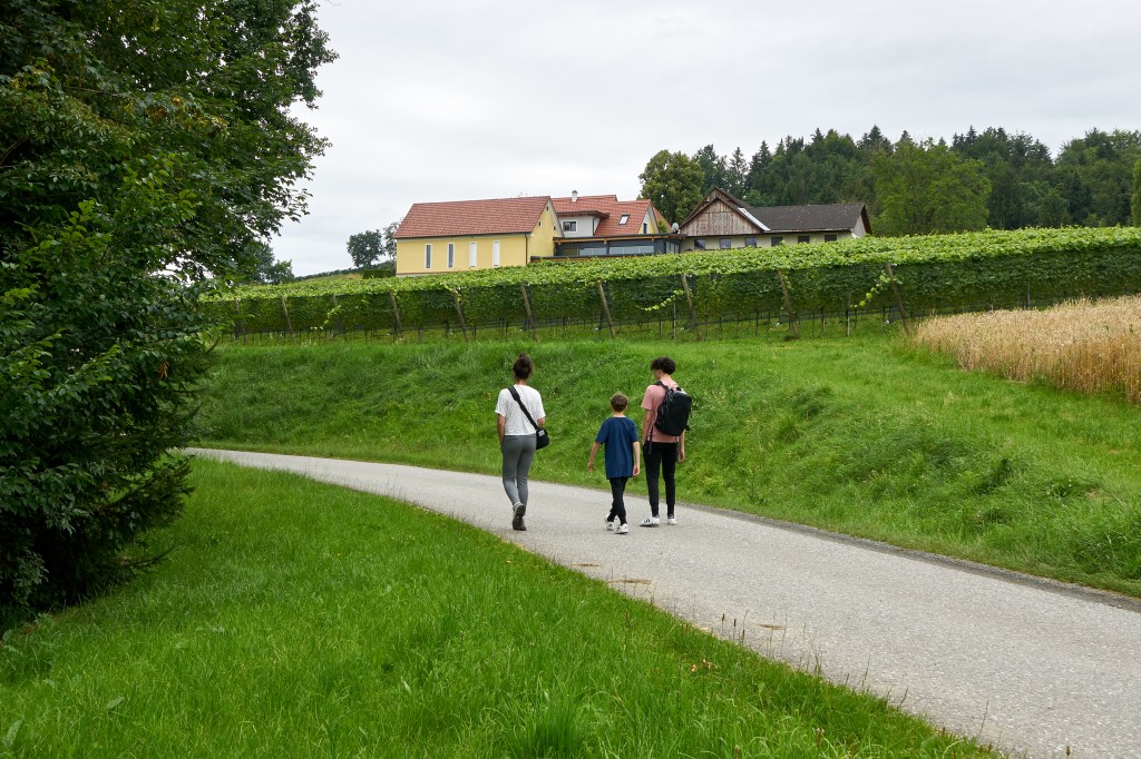 Die Wanderung der Eibiswald-Weingartenrunde ist natürlich für Bergfreunde gehtechnisch nicht sehr anspruchsvoll, umso mehr dafür die Verkostung heimischer Spezialitäten bei Weinbauern und Buschenschanken, fast immer in traumhafter Lage auf einem der unzähligen Hügel. Und wie wir so bei Jause, Traubensaft und Schilcher unser Familienleben feiern, ist uns einmal mehr bewusst: Es gibt neben den Klassikern – Meeresstrände, Almen, Berge, Seen, … – noch viele wesentlich unscheinbarere Plätze, an denen es einfach reicht anwesend zu sein, und die Erholung stellt sich Kraft der Natur ganz von selbst ein.